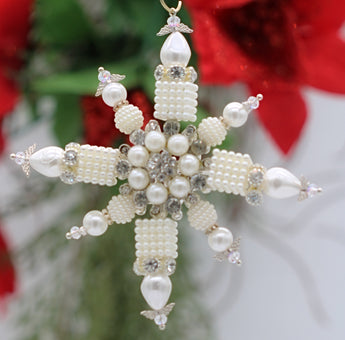 Your Handcrafted Ornament is made of the finest Base Metals, Glass Pearls, Austrian Crystals, Austrian Crystal Components, Angel Wings with Ornate Medallions inset with Glass Crystals and Pearls. Size: 4" x 4"